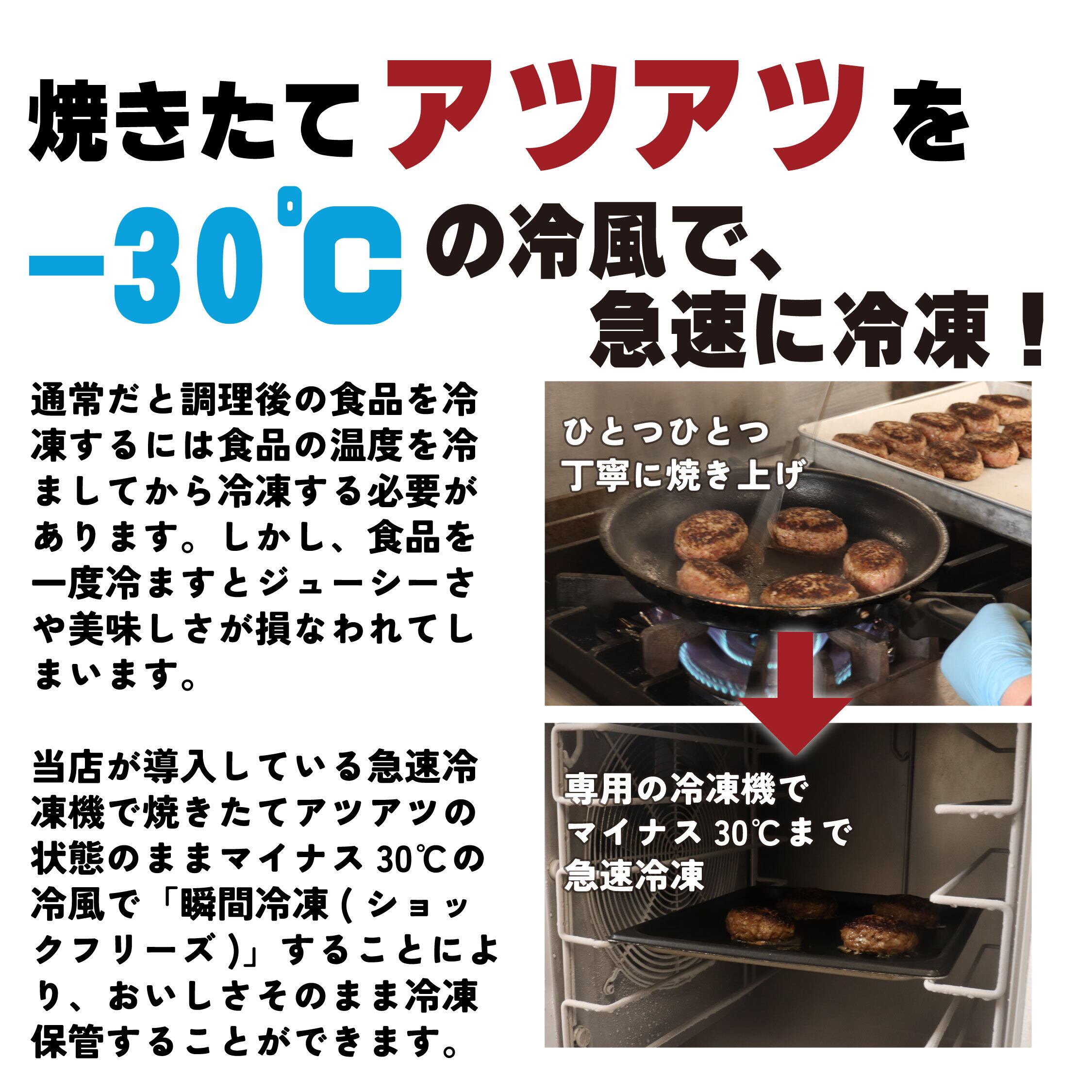 フトシショップで販売する冷凍商品は、うまみ成分をきちんと閉じ込めて、解凍しても味が落ちない状態にするために、焼きたてのアツアツを急速でマイナス30度の冷風で冷凍することにより、お肉のジューシーさや美味しさを保っています。最新の冷凍技術により、ご家庭でも湯せんするだけで、簡単にお店と同じ味が再現できます。